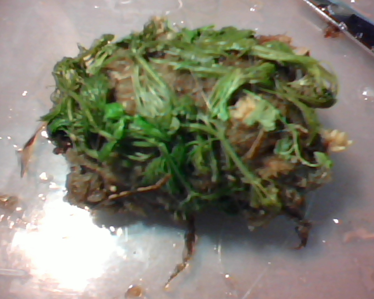 水草には少し弱ってしまっているセイヨウキクモと少しばかりのオーストラリアドワーフヒドロコティレです。あまりきつく縛らないようにします。