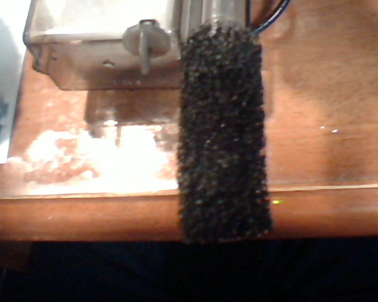 本当はスポンジフィルターや外部フィルターが良いんでしょうが、無いので余っているフィルターを使います。水を吸い込むところには、エビを吸い込まないようにスポンジを取り付けます。