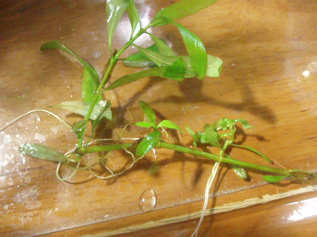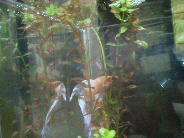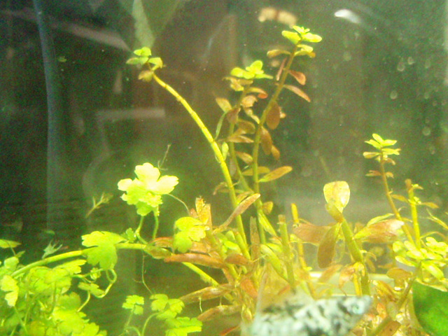 8リットルキューブのベタ水槽では、葉はあまり落ちることなく、新芽も出て、順調に成長しています。