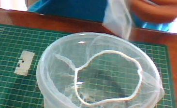 この容器は薄く平面ではないので、切ることが少し難しかったです。
