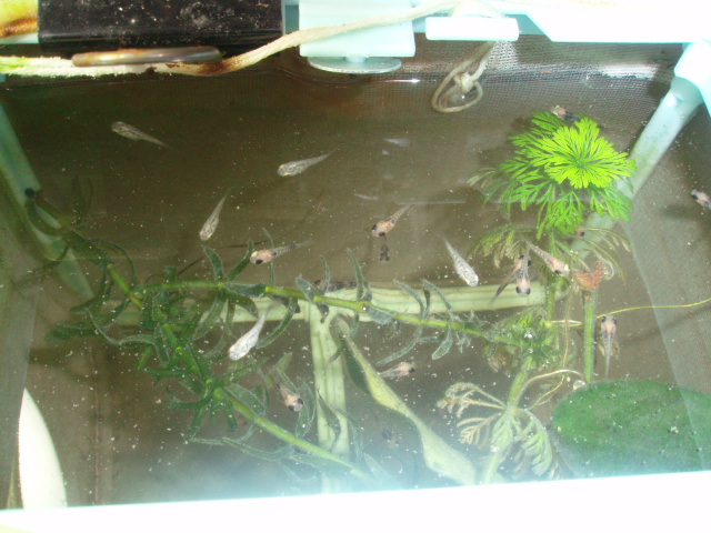 最近稚魚が産まれたばかりなのですが、また産んでいただきました。今度の稚魚は最初からほんのり白色ではなく透明です。全部で12~15匹ほどです。ライヤーモーリーはたくさん産みますね。