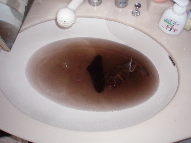 まず買ってきた流木バケツかなにかに入れて水、またはぬるま湯につけます。まずこの時点でアクが出てくると思います。次にタワシで流木をこすります。するとアクがみるみる出てきます。水がアクだらけになったら、水換えをして、タワシでこすってください。