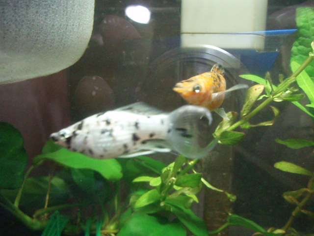 最初は白が大めのモーリーでしたが、月日が経つごとに黒の割合が多くなりました。理由は謎です。稚魚を産むストレス?それともただの衣換えみたいなもの?オスのオレンジと黒のモーリーはさほど変わった印象はありません。