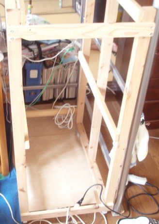 今回作る水槽台もネットで自作している人に近いものを作りました。高さはおよそ90センチ、幅は45センチ、奥行きは72センチ。今は中の空白部分に何もありませんが、後日棚を作る予定です。